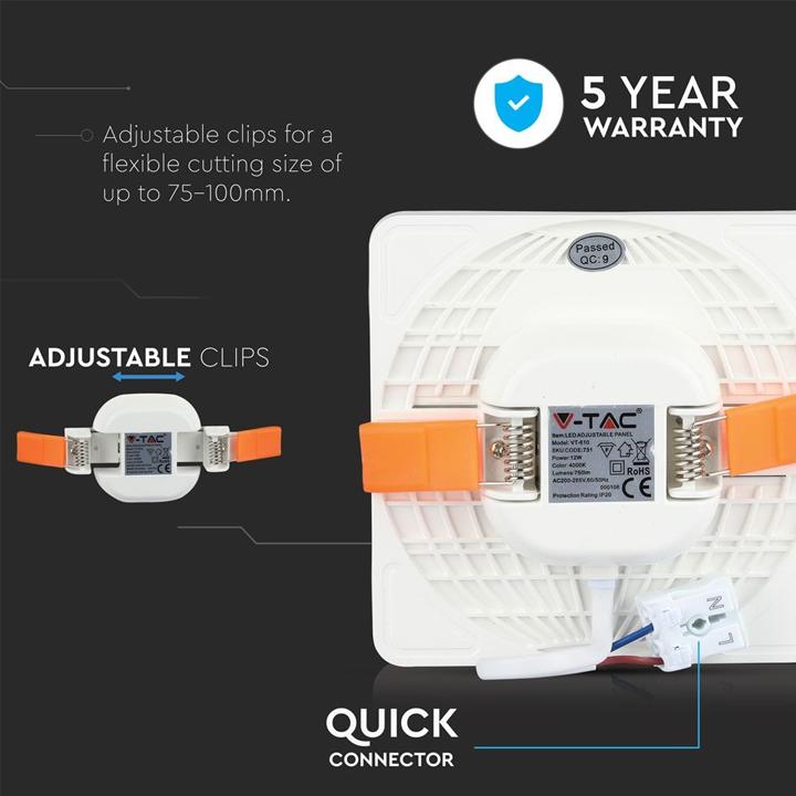 Aumenta quantità per 12W LED MOLLE REGOLABILI PANNELLO SAMSUNG CHIP SQUARE 3000K