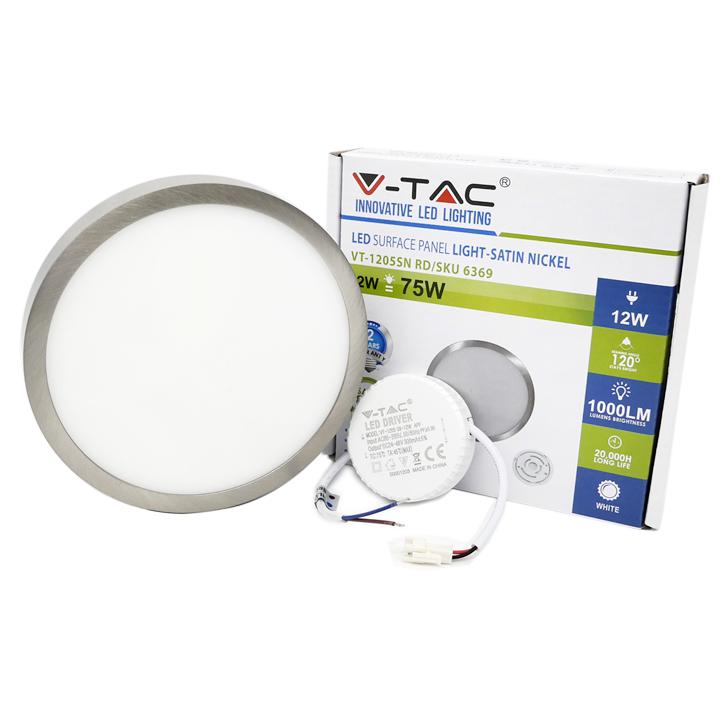 Diminuisci quantità per 12W PANNELLO LED MONTATO SUPERFICIE SOTTILE NICHEL SATINATO ROTONDO BIANCO CALDO 3000K