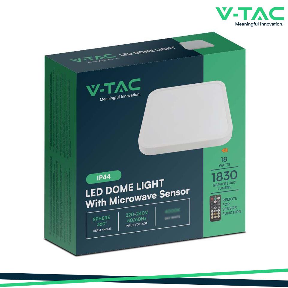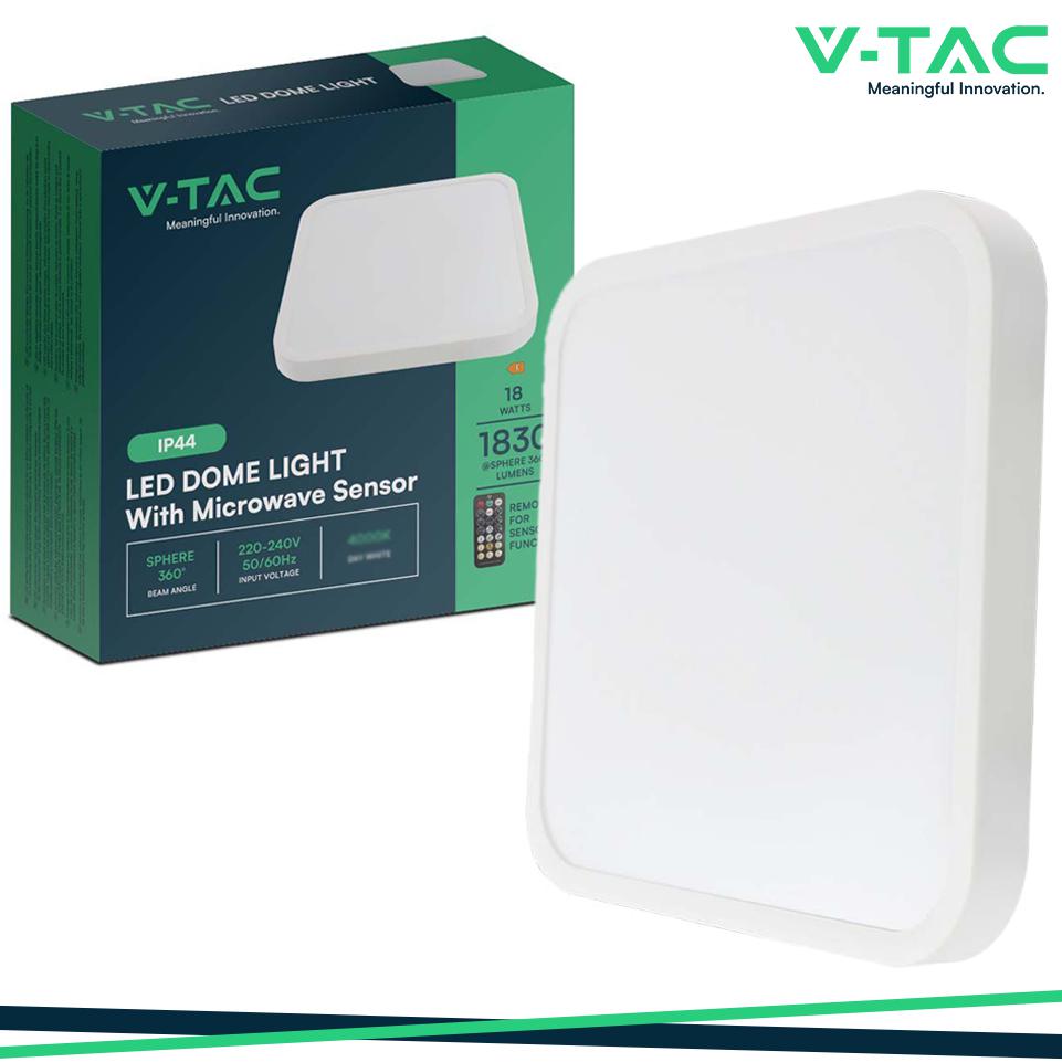 18W LED PLAFONIERA QUADRATA MICROWAVE SENSOR CORNICE BIANCA 4000K IP44