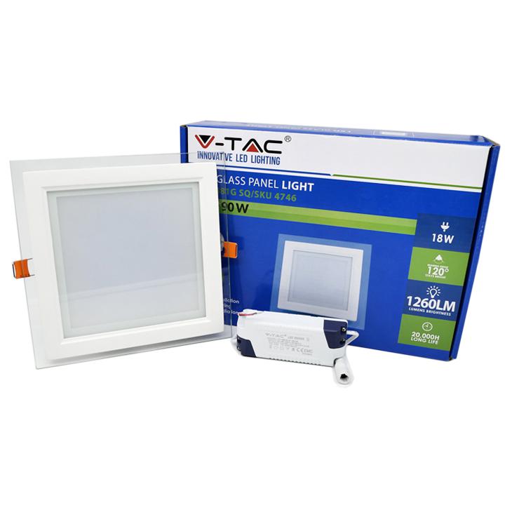 18W PANNELLO LED MINI VETRO QUADRATO BIANCO FREDDO 6000K