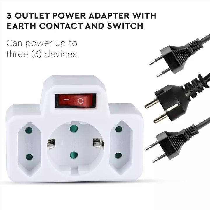 Aumenta quantità per 3 OUTLET POWER ADAPTER WITH EARTH CONTACT AND SWITCH 16A 250V