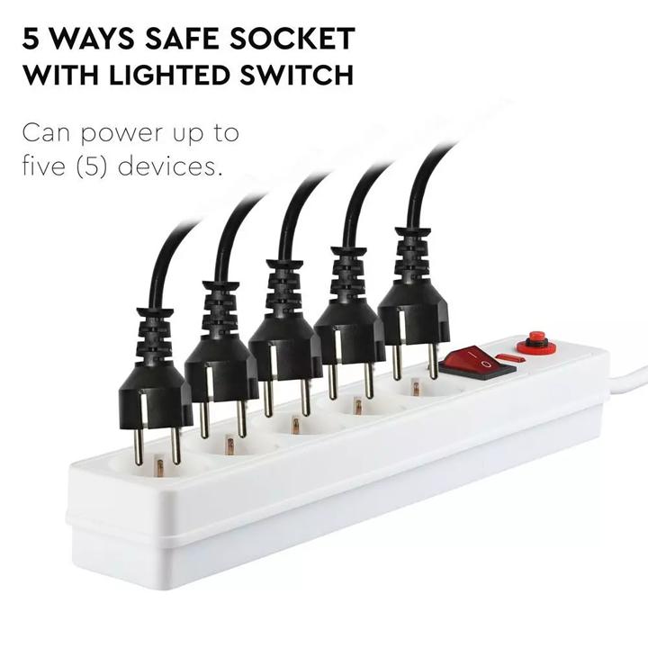 5 WAYS SAFE SOCKET LIGHTED SWITCH 3G 1.5MM X 1.4M
