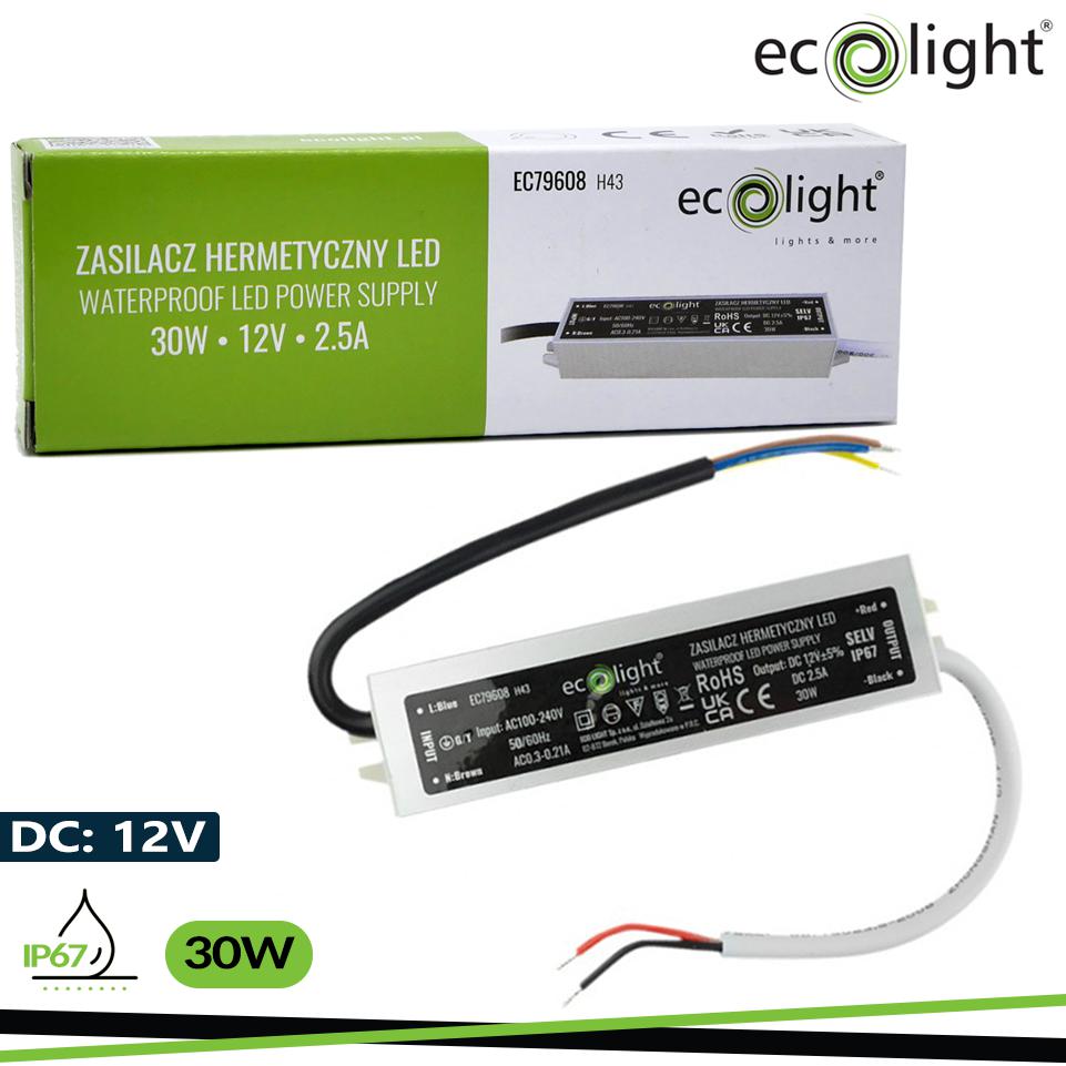 Diminuisci quantità per ALIMENTATORE IP67 30W 12V 2,5A 160X30X20MM