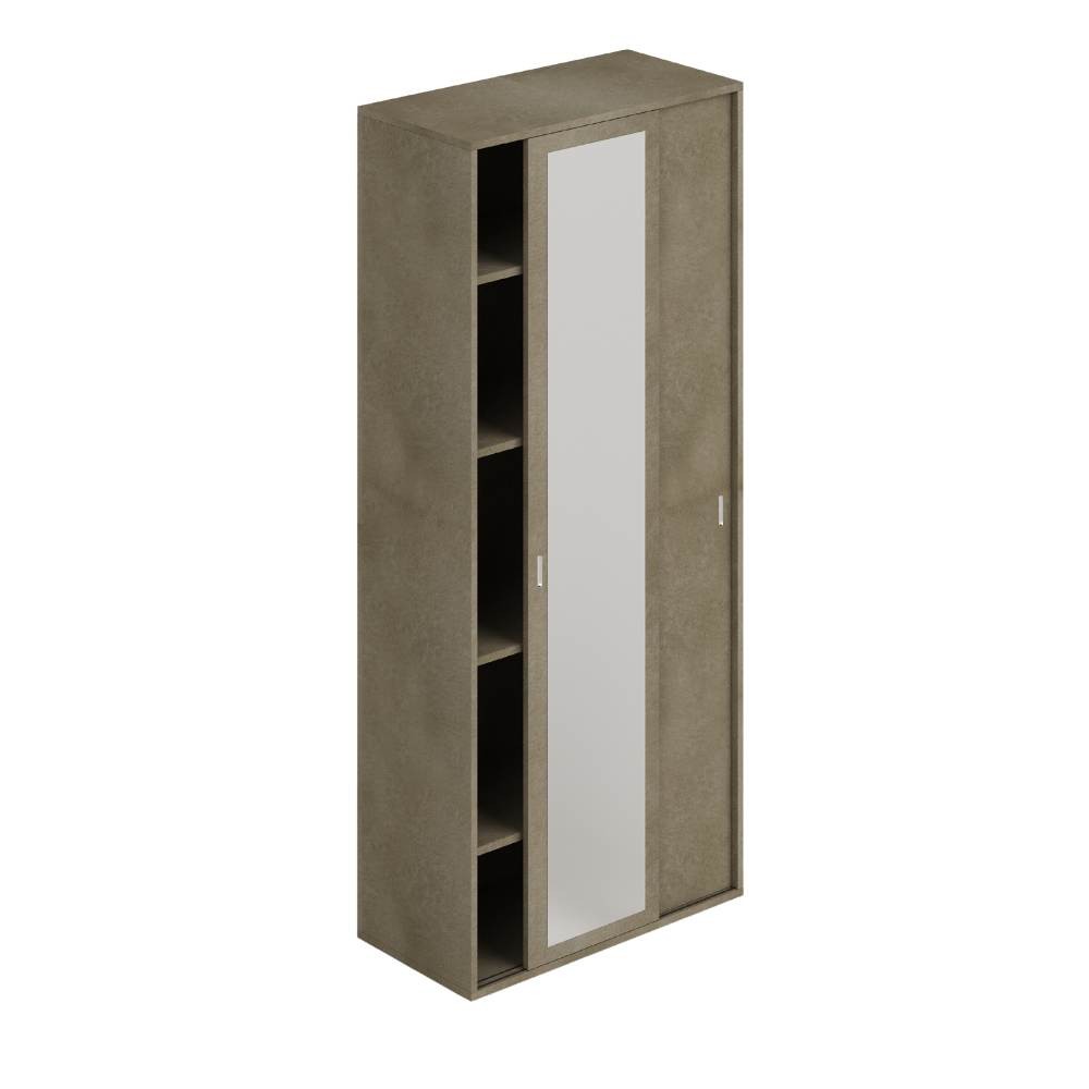 Armadio 212 due ante scorrevoli con specchio argilla con ripiani