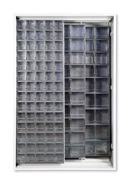 Armadio con 2 pannelli scorrevoli e 2 fissi, 154 cassetti.