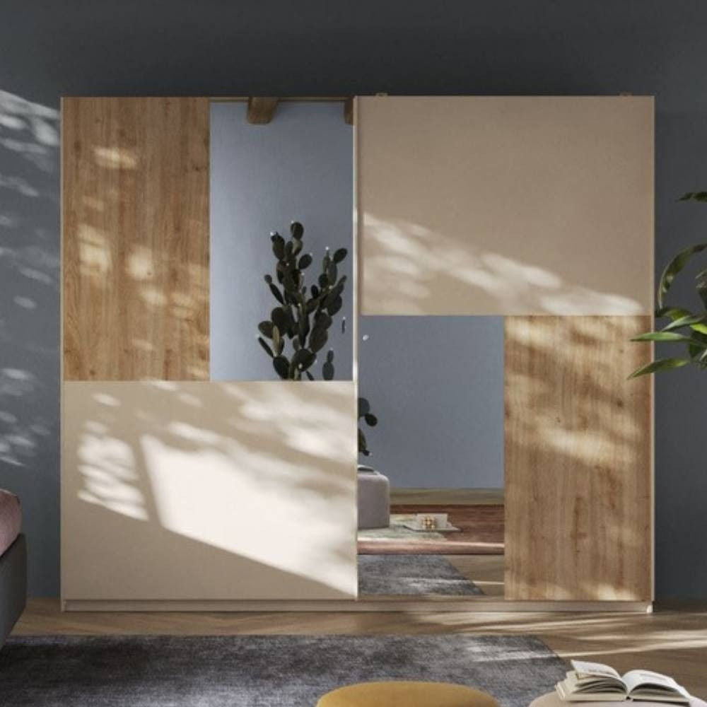 Armadio Myla con due ante scorrevoli con specchi rovere kadiz e cachemire