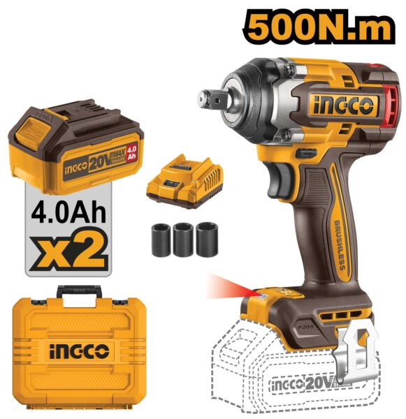 Avvitatore ad impulsi 20V da 1/2P. c/2 batterie da 4.0ah 500N.m
