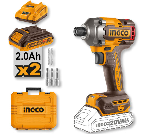 Avvitatore ad impulsi 20V da 1/4P. c/2 batterie da 2.0ah 285N.m