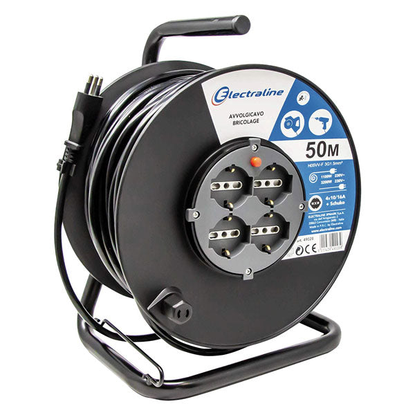 Avvolgicavo bricolage 4 schuko 10/16a, cavo h05vv-f (3x1,5mm) - 50 mt