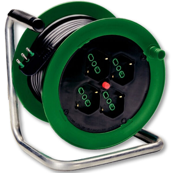 Avvolgicavo con 4 prese bipasso/schuko disgiuntore cavo 3x1,5mmq mt.15
