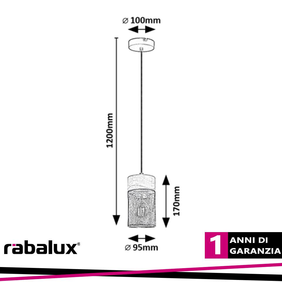 Aumenta quantità per CALLUM, INDOOR PENDANT LAMP, METAL/WOOD LAMP WITH BLACK META