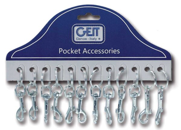 Cartella 12 moschettoni CH cm. 7,2 + anello nichel