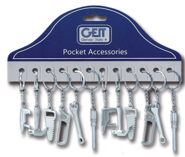Aumenta quantità per Cartella 12 portachiavi mini tool forme assortite