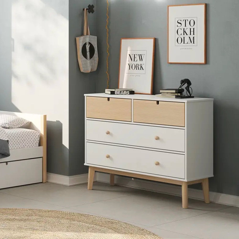 Cassettiera Estefania in legno con 2 cassetti bianchi e 2 cassettini pino