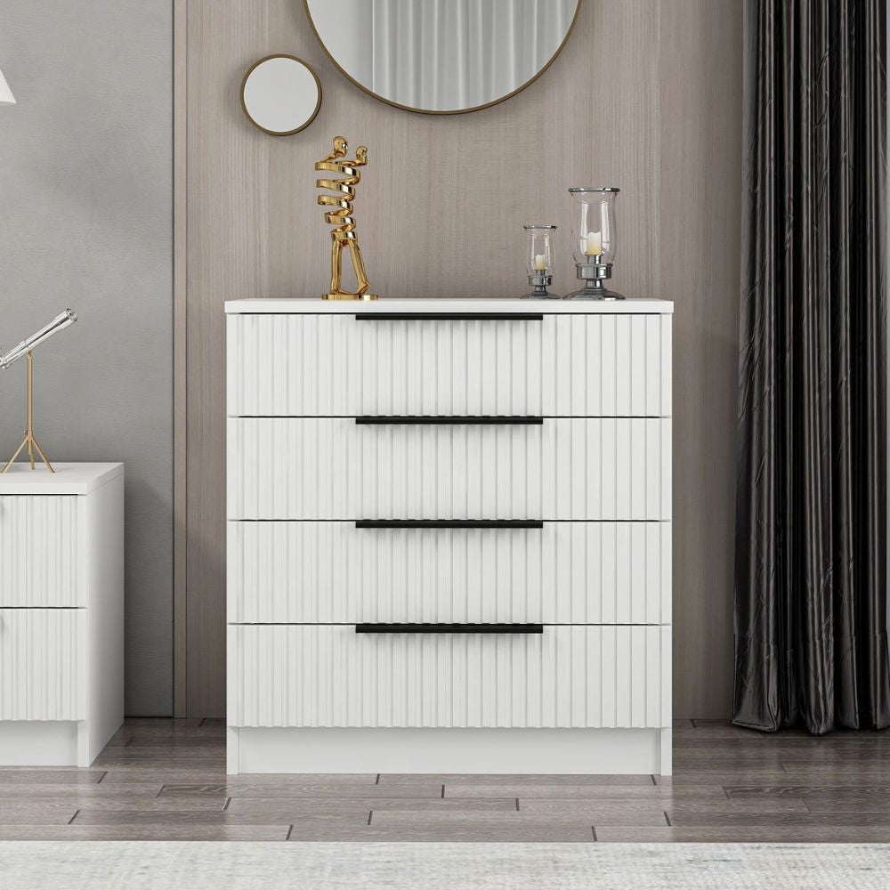Aumenta quantità per Cassettiera Kale 4 cassetti effetto cannettato bianco con maniglie nere