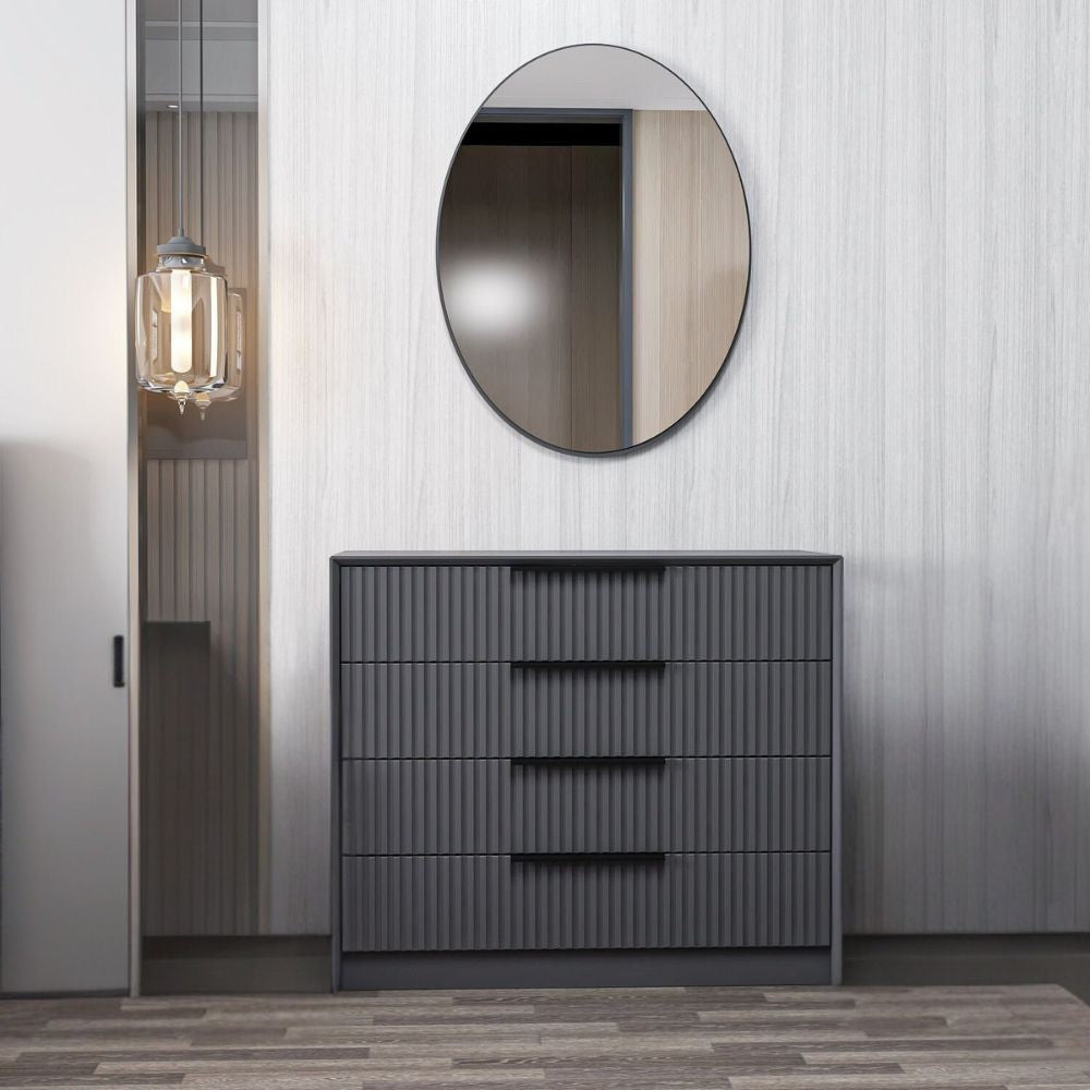 Cassettiera Kale 4 cassetti effetto cannettato colore antracite con specchio