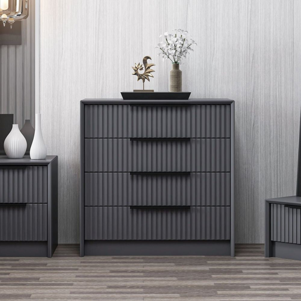 Diminuisci quantità per Cassettiera Kale 4 cassetti incassati effetto cannettato colore antracite