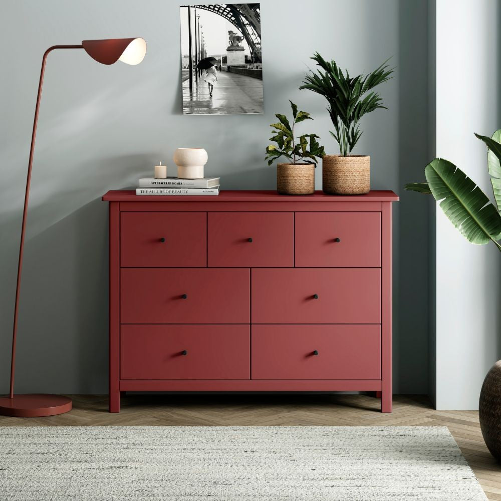 Cassettiera Misti con 4 cassettoni e 3 cassettini in legno massiccio bordeaux