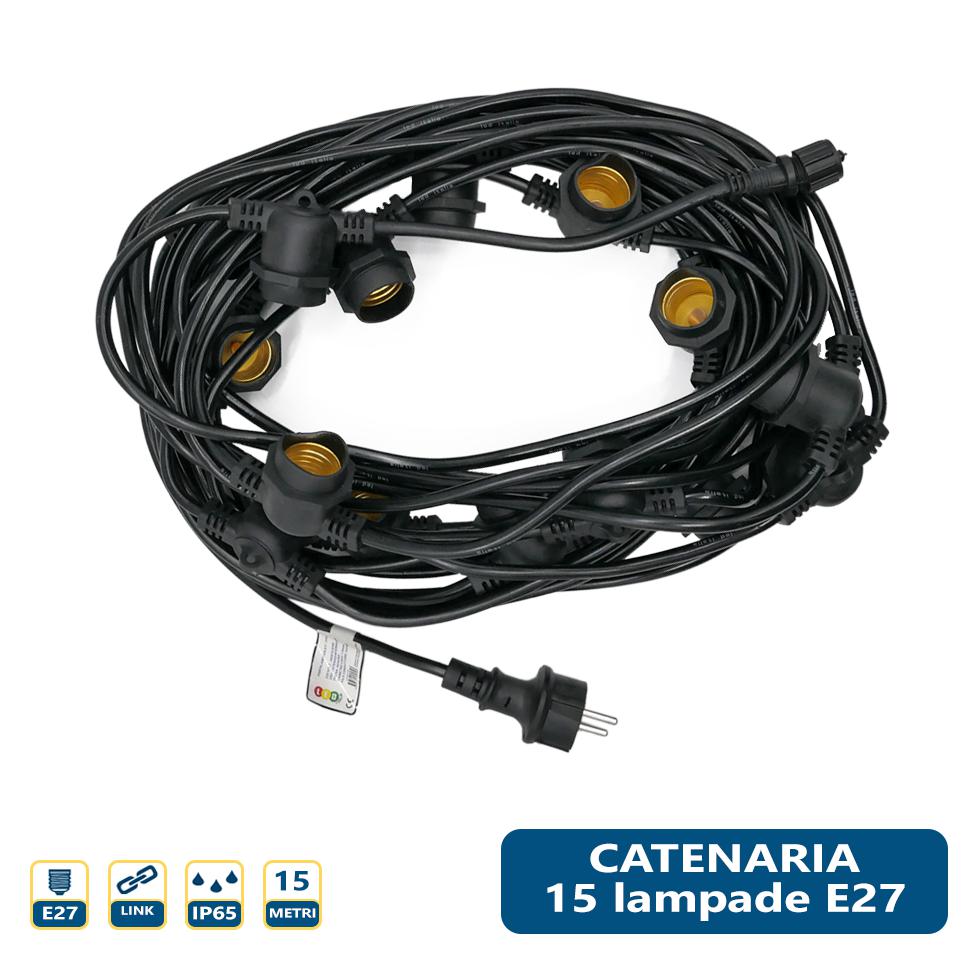 CATENARIA CON 15 LAMPADE E27 LUNGHEZZA 15MT NERO