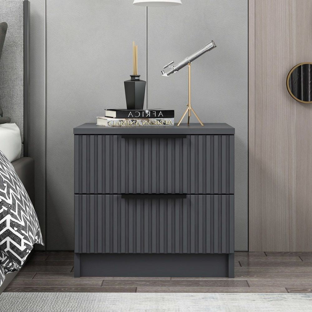 Comodino Kale con 2 cassetti a filo effetto cannettato colore antracite