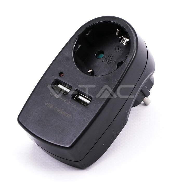 EUROPEAN TYPE PLUG ADAPTER WITH EARTHING CONTACT & CHARGING INTERFACE BLACK