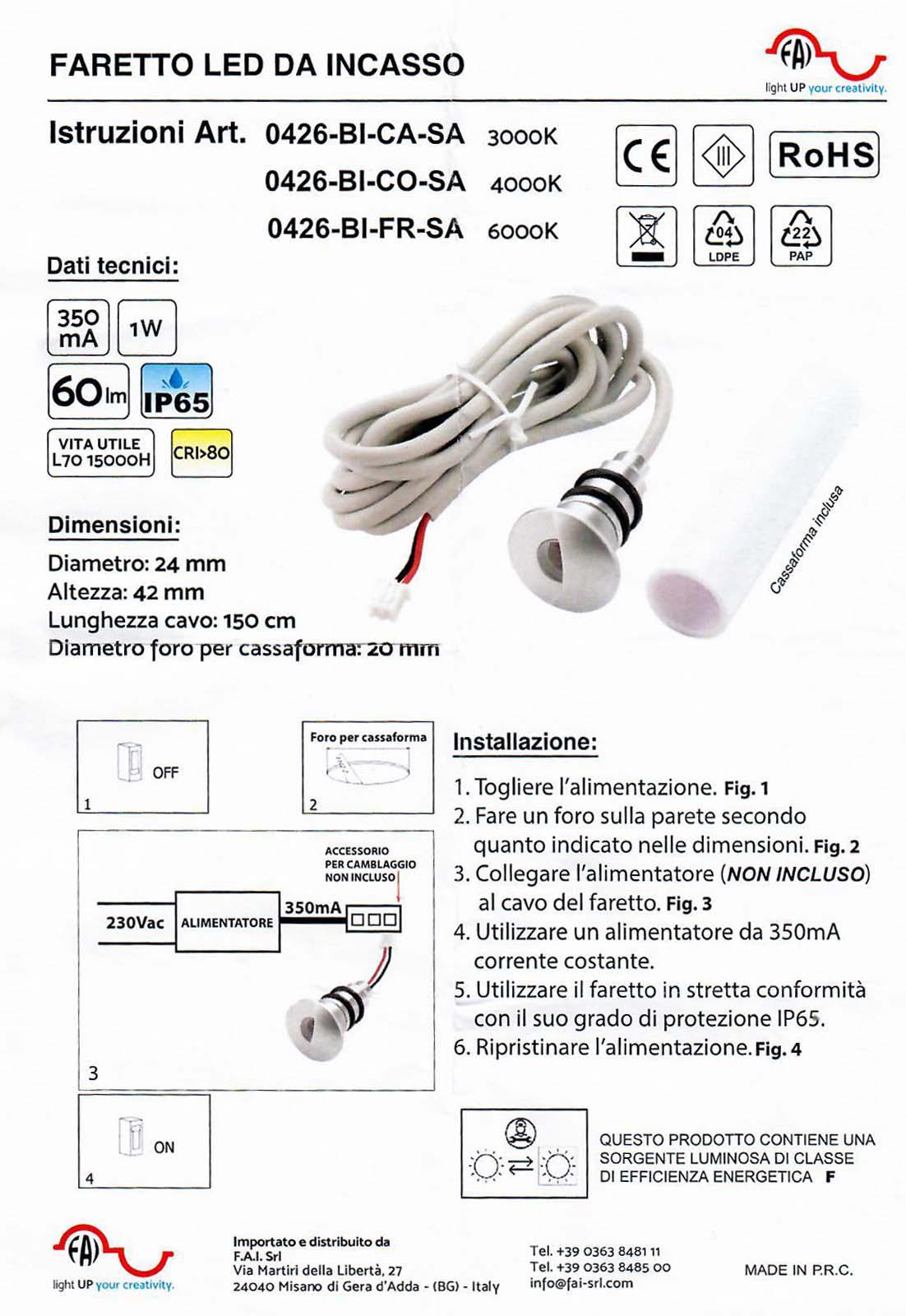 Aumenta quantità per FARETTO LED 1W SATINATO IP65 4000K 60LM 12V