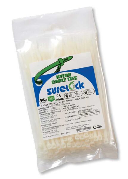 Diminuisci quantità per Fascette in nylon 66 bianco mm.104x2,5 in busta da 100pz.