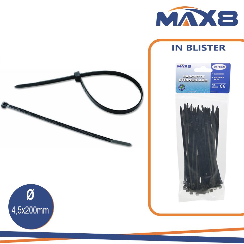 FASCETTE PA 6.6 4,5X200MM NERO CONF.50PZ