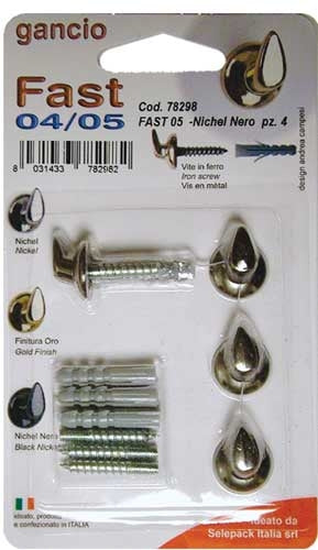 Aumenta quantità per Gancio fast con tassello mm.5, nichel nero,in blister da 4 pezzi