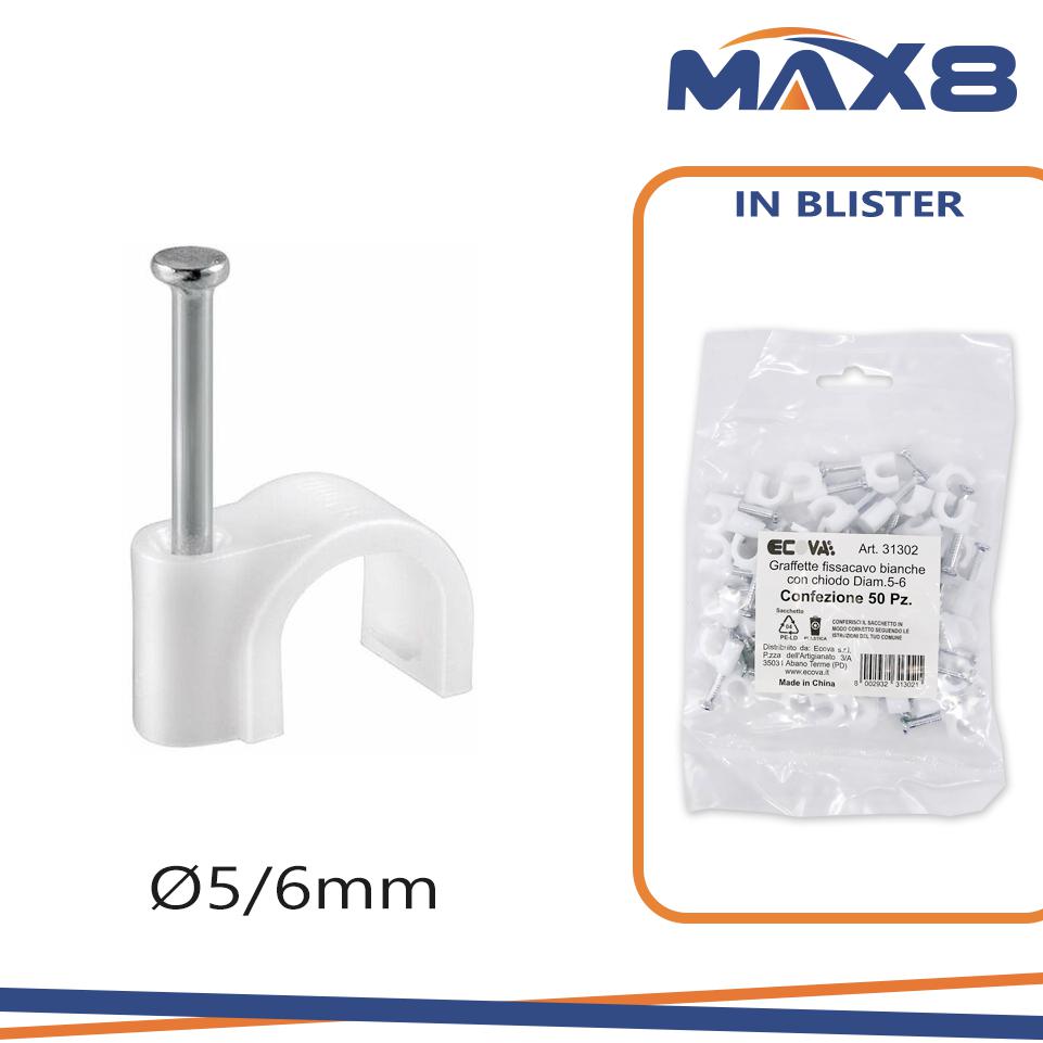 GRAFFETTE FISSACAVO BIANCHE C/CHIODO DIAM.5/6MM CONF. 50PZ