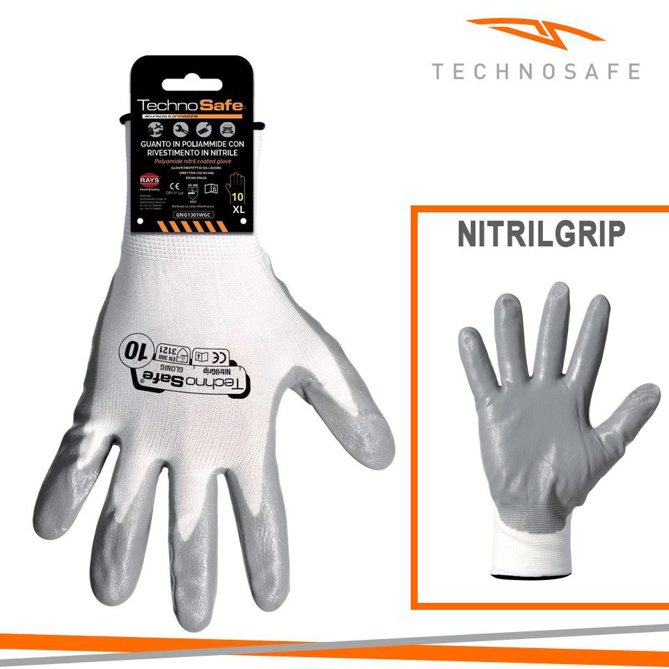 GUANTI SINTETICO MIS.8 NITRILE DORSO AREATO BIANCO CAV.