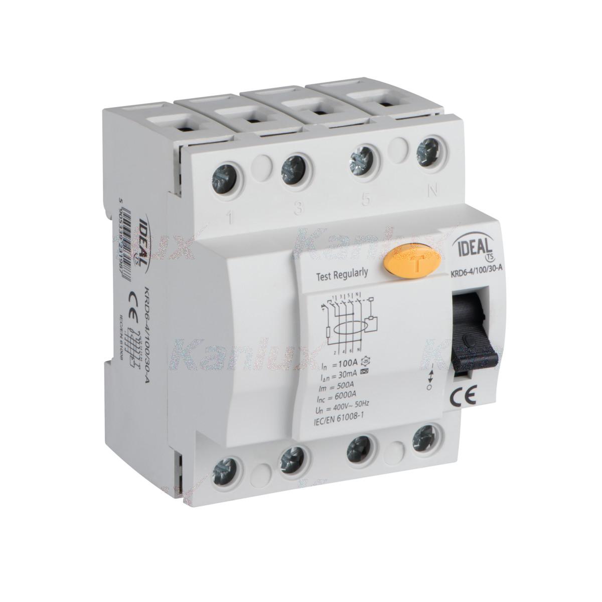 INTERRUTTORE DIFFERENZIALE, 4P KRD6-4/100/30-A - KANLUX