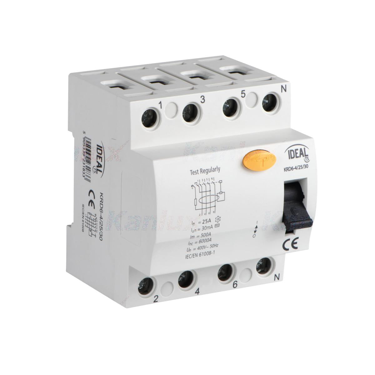 INTERRUTTORE DIFFERENZIALE, 4P KRD6-4/25/30 - KANLUX