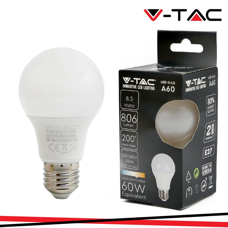 LAMPADINE LED E27 8.5W A60 3000K / CALDA - €0,59