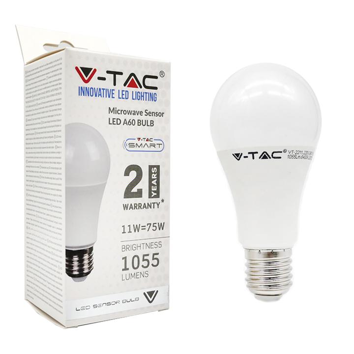 Aumenta quantità per LAMPADINA A LED 11W E27 A60 RA80 SENSORE A MICROONDE 3000K