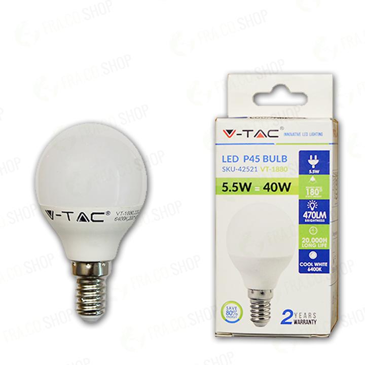 LAMPADINA A LED - 5.5W E14 P45 BIANCO NATURALE 2700K