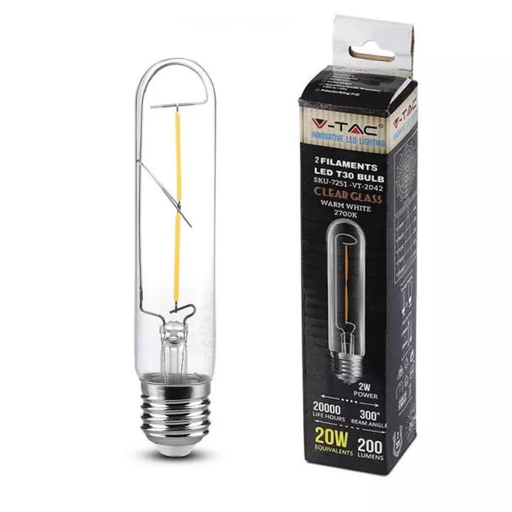LAMPADINA LED - 2W T30 E27 FILAMENTO BIANCO CALDO 2700K