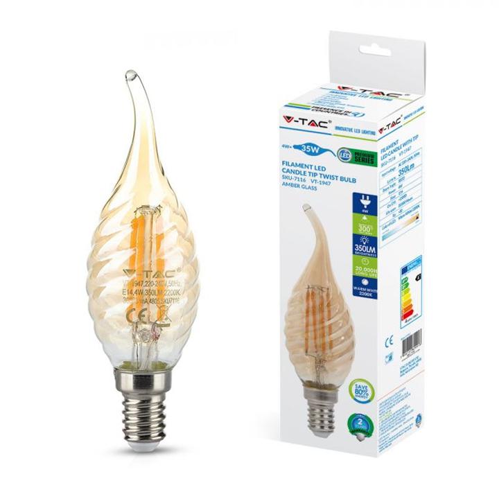 LAMPADINA LED - 4W FILAMENTO E14 CANDELA FIAMMA AMBER BIANCO CALDO 2700K
