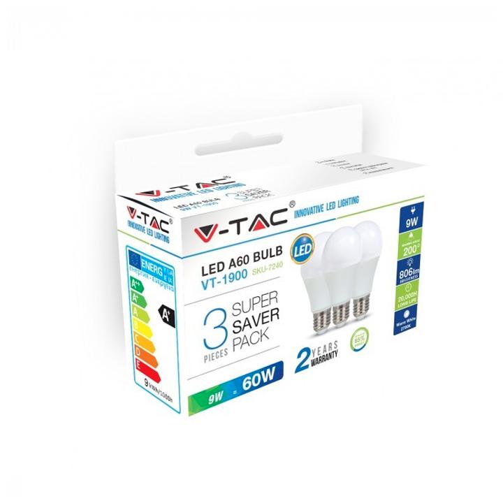 LAMPADINA LED - 9W E27 A60 TERMOPLASTICO BIANCO CALDO 3PZ 2700K