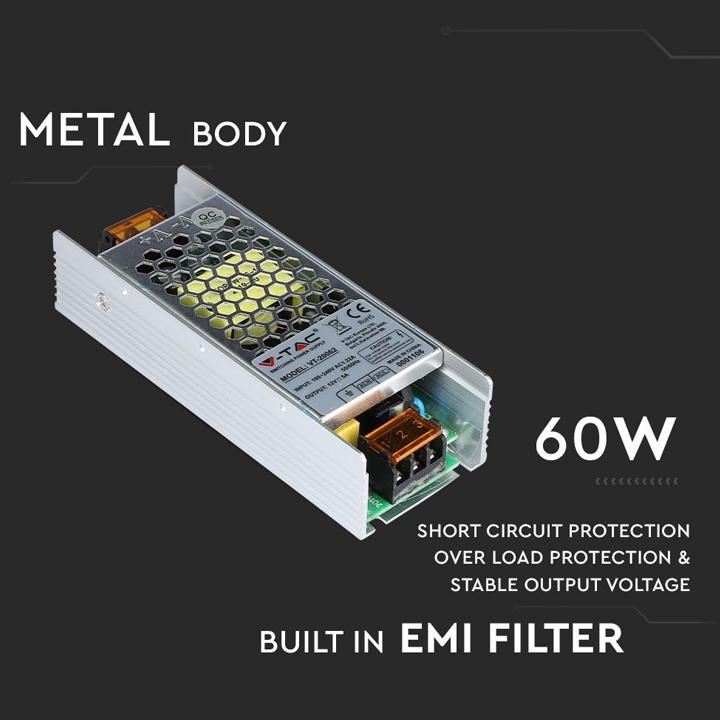 LED ALIMENTATORE - 60W 12V 5A METAL SLIM