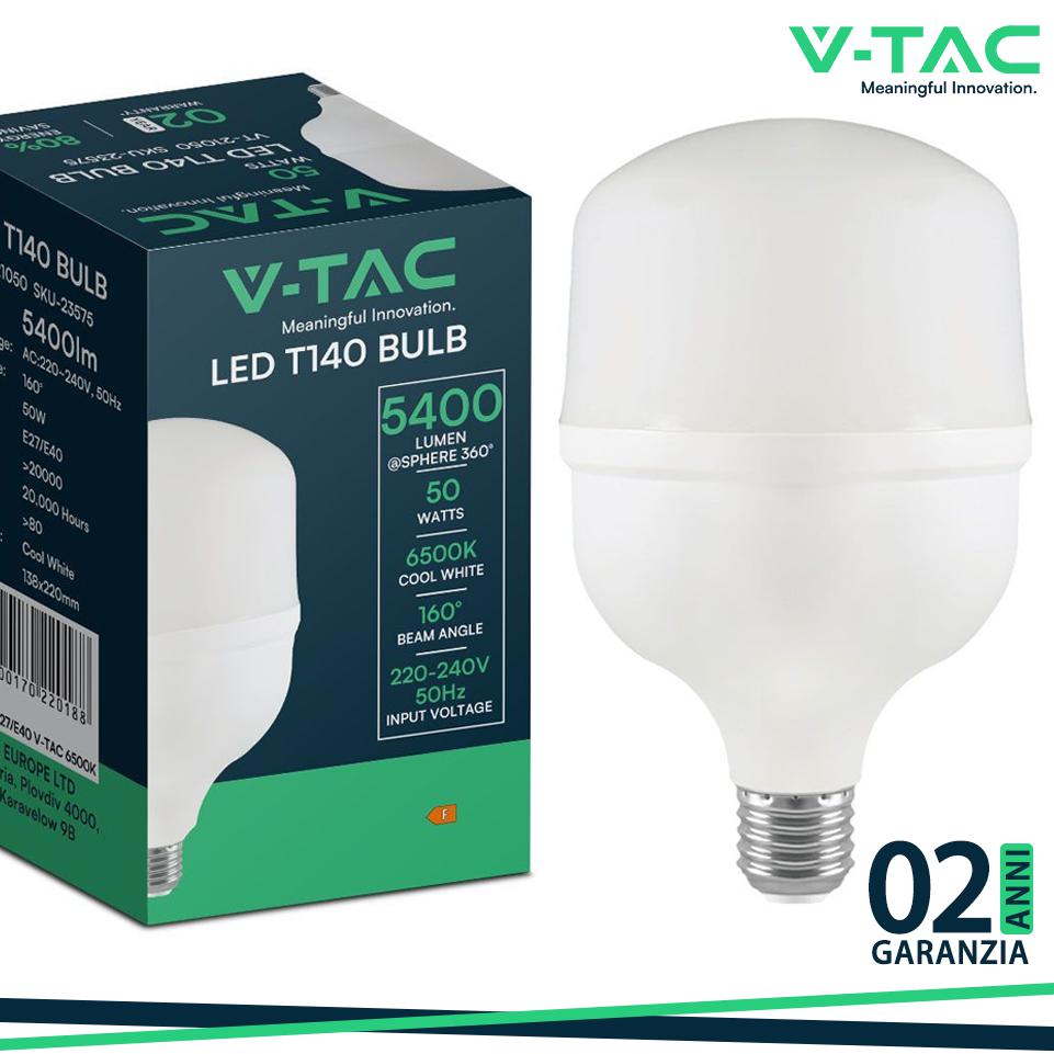 Diminuisci quantità per LED LAMPADINA 50W PLASTICA T140 6500K E27 CON E40 RING