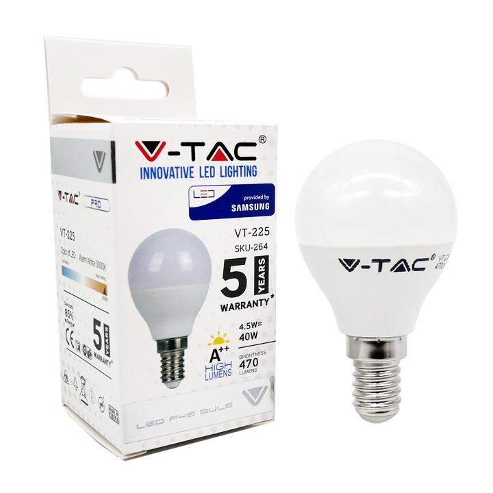 LED LAMPADINA - SAMSUNG CHIP 4.5W E14 A++ P45 PLASTICA 4000K