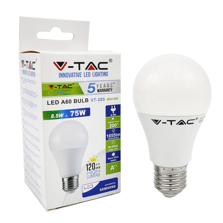 LED LAMPADINA - SAMSUNG CHIP 8.5W E27 A++ A60 PLASTICA 3000K