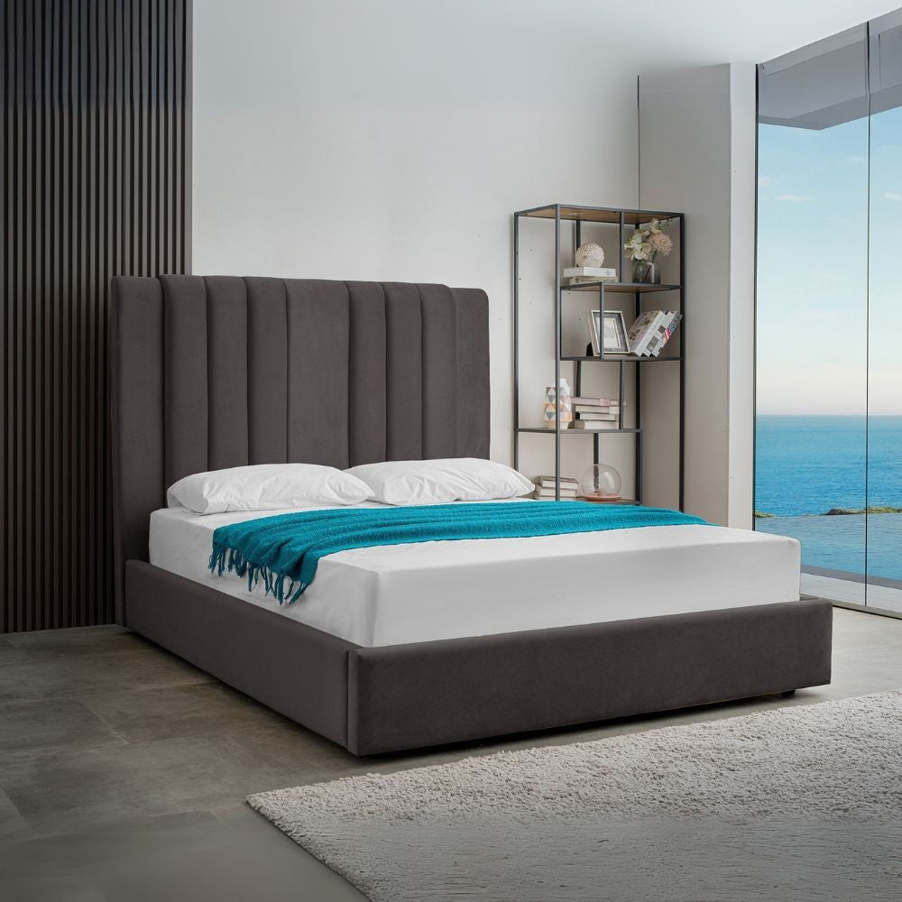 Letto matrimoniale Wilma imbottito con contenitore in tessuto Vogue 16 grafite