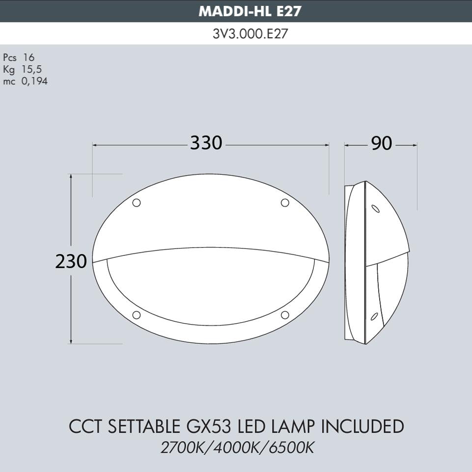 Aumenta quantità per MADDI HL NERO OPALE E 27 WALL