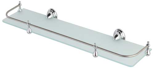Mensola acciaio cromo/vetro satinato,piastrine antiruggine mis. 50 cm.