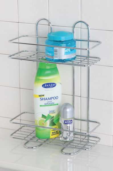 Mensola rettangolare 2 ripiani 26x11x35h in acciaio cromato.