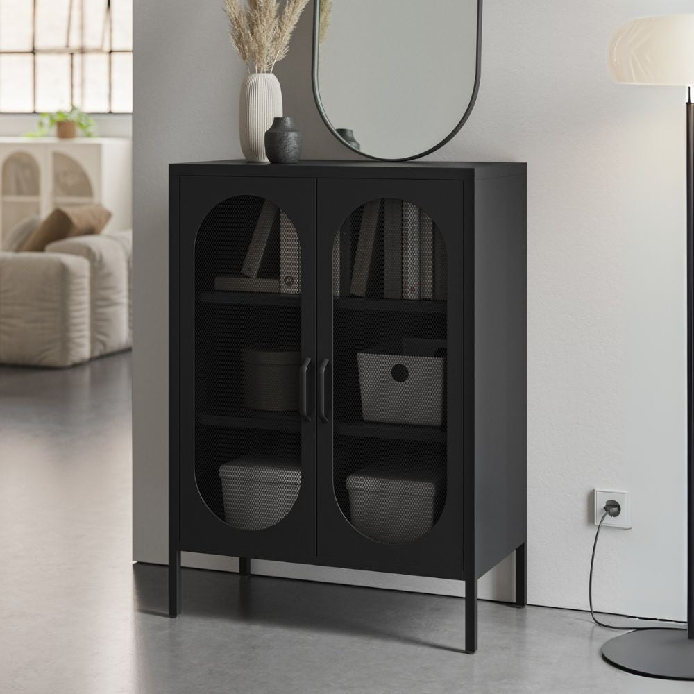 Mobile multiuso Diora in metallo con 2 ante colore nero