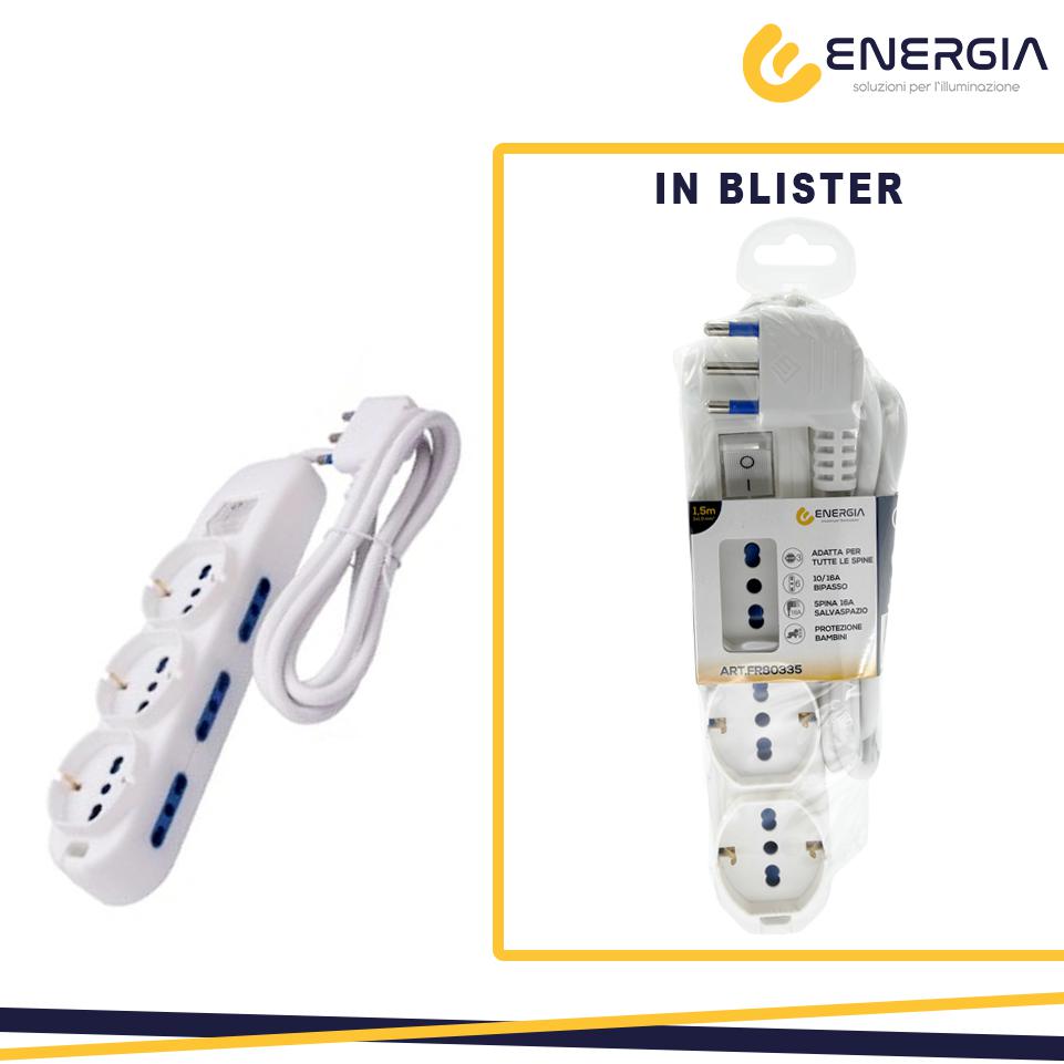 MULTIPRESA 3 UNIV 6 BIP 10/16A SP 16A INT.LUM. CAVO 1.5M BIA