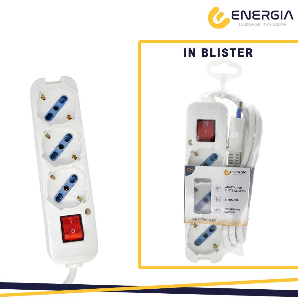MULTIPRESA 3 USCITE UNIVERSALI SP 16A INT. LUM. CAVO 1.5M BI